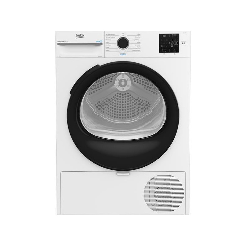 Le sèche-linge Beko D3H18D93W à pompe à chaleur offre une capacité de 8 kg, adaptée aux besoins d’un foyer de taille moyenne. Classé D, il combine un séchage efficace avec une consommation maîtrisée. Grâce à la technologie à pompe à chaleur, il sèche à basse température pour préserver les fibres des textiles tout en réduisant la consommation d’énergie. Il propose plusieurs programmes de séchage pour coton, synthétiques et cycles rapides, avec des capteurs d’humidité qui ajustent automatiquement la durée du cycle. Simple à utiliser, silencieux et facile à entretenir, il constitue une solution pratique et fiable pour le séchage quotidien du linge.